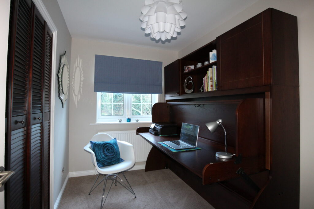 This upstairs box room has been transformed into a contemporary, stylish guest bedroom and writing room thanks to a StudyBed. We stained the StudyBed to match existing cupboard doors creating a beautiful space with more than one use.